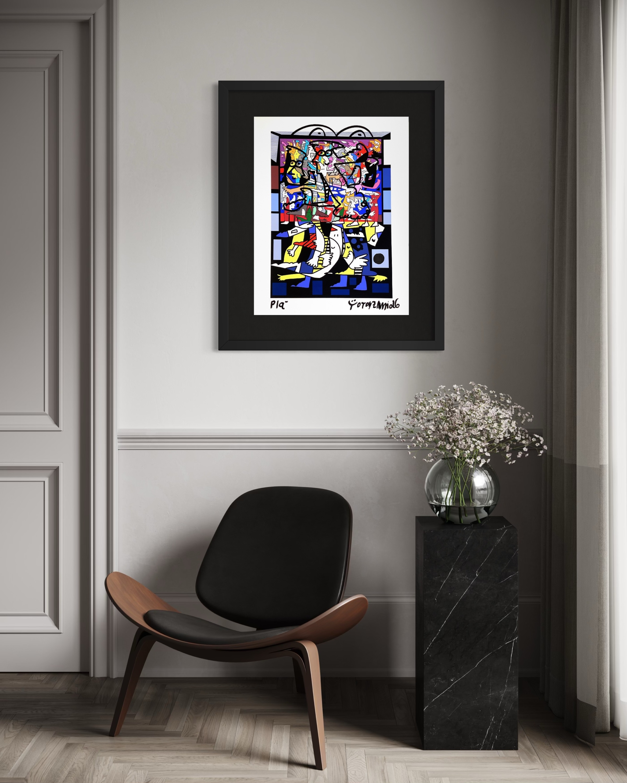 Obra enmarcada profesionalmente y lista para instalación.