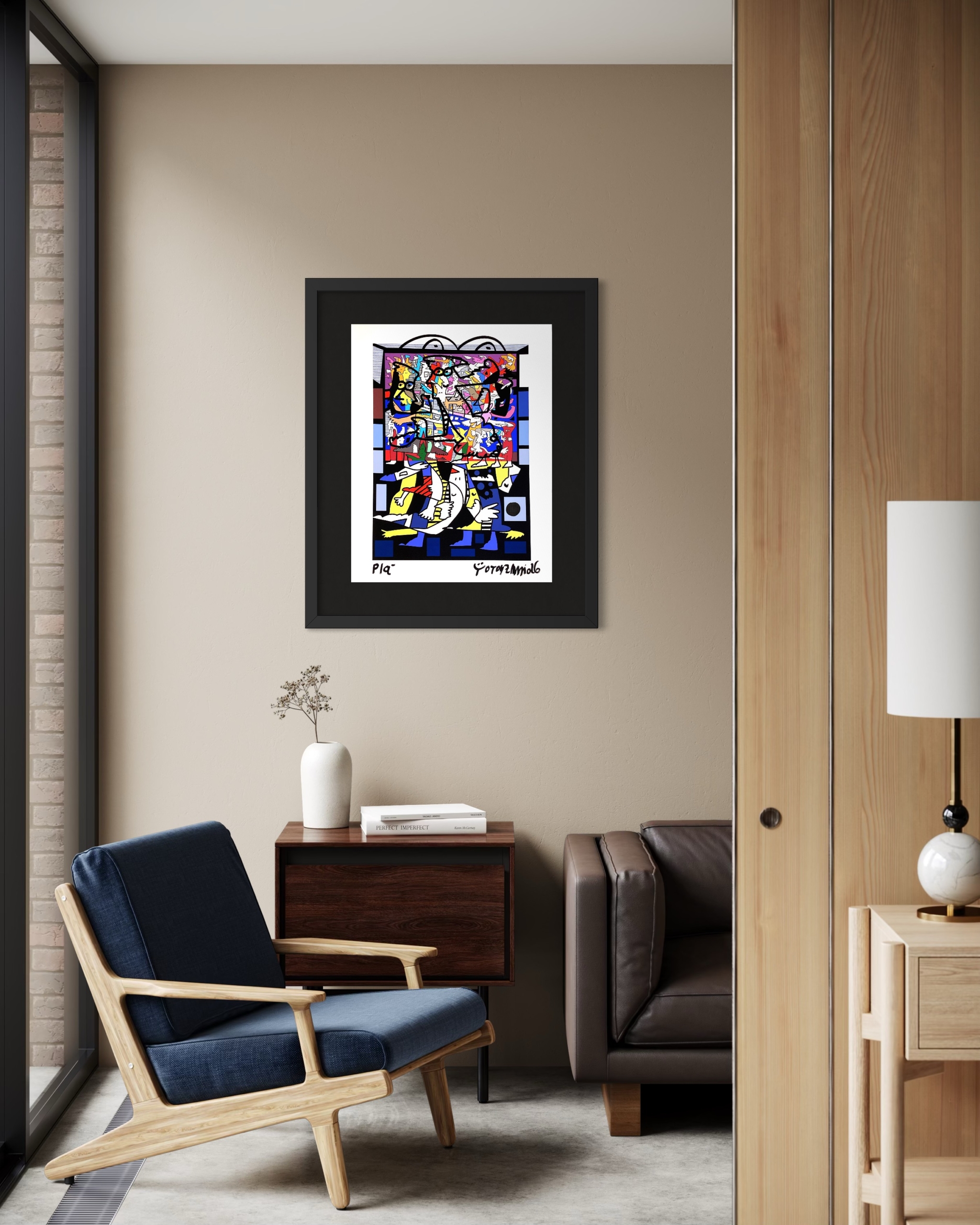 De formato mediano y gran impacto estético, esta pieza es ideal para espacios contemporáneos que buscan una obra con personalidad fuerte, expresiva y absolutamente reconocible dentro del universo de Zamudio.